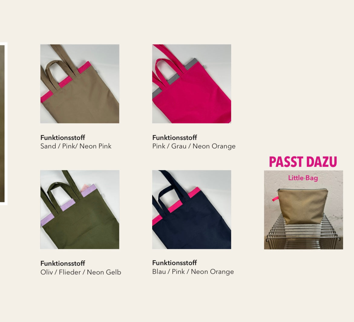 - innenliegende Neonlasche zur Befestigung von Schlüssel oder Little Bag