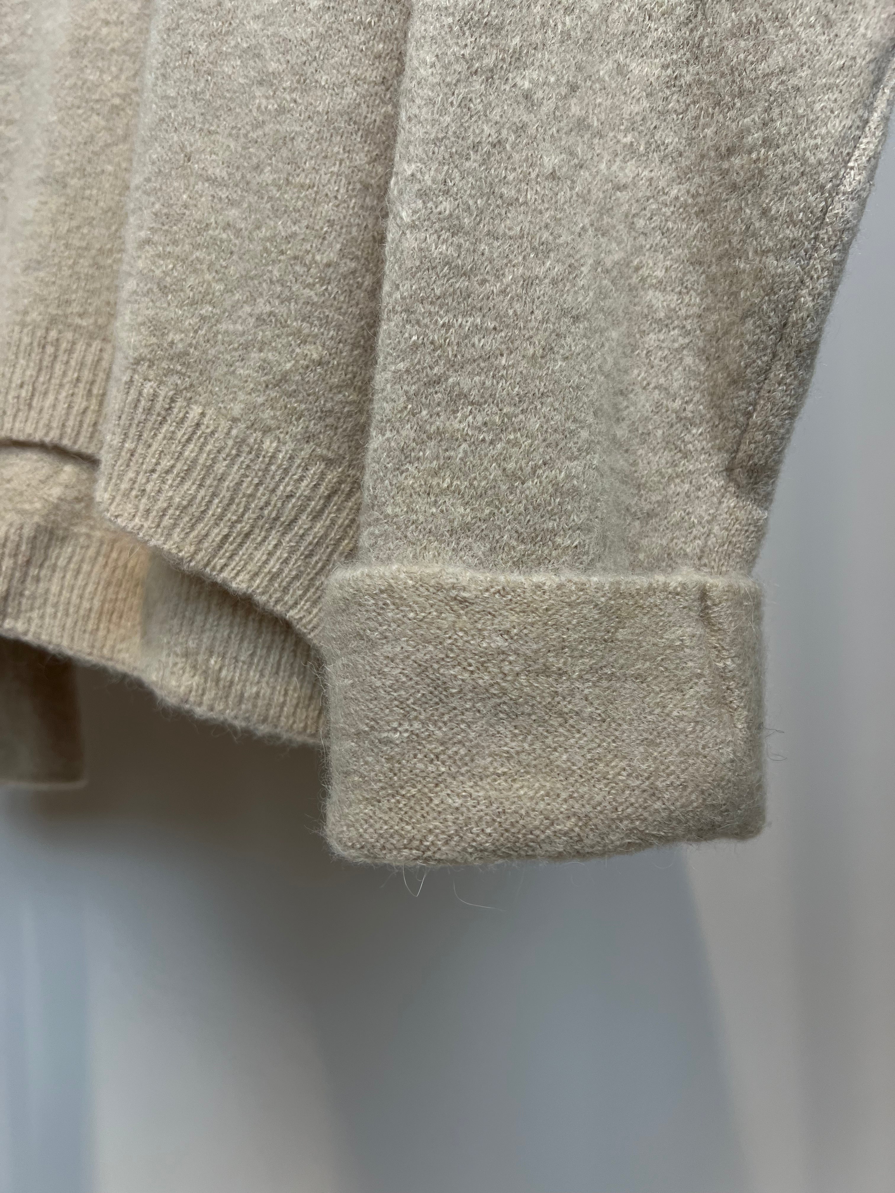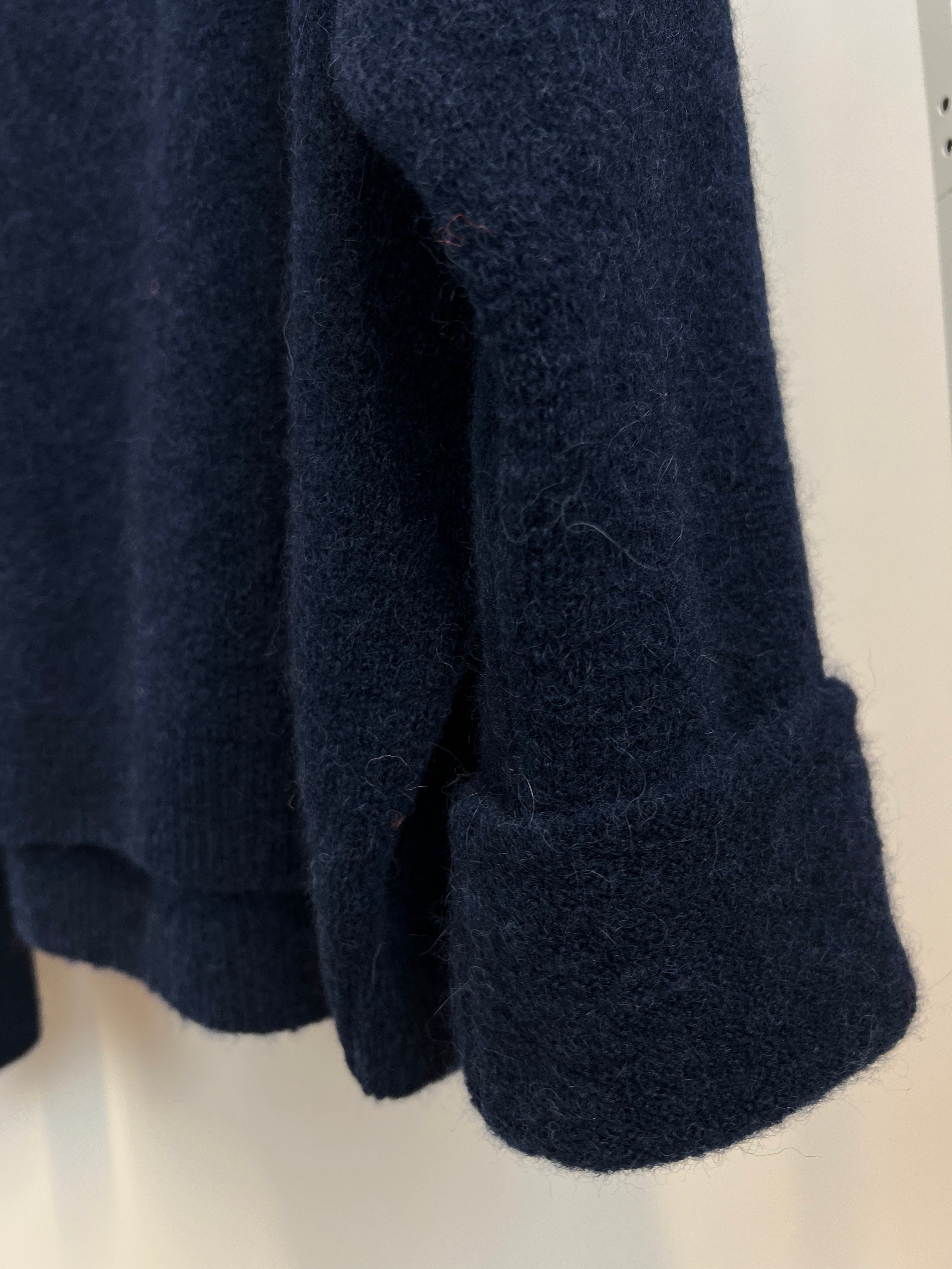 (Wir waschen ihn kalt im Wollwaschgang und schleudern ihn vorsichtig an.)